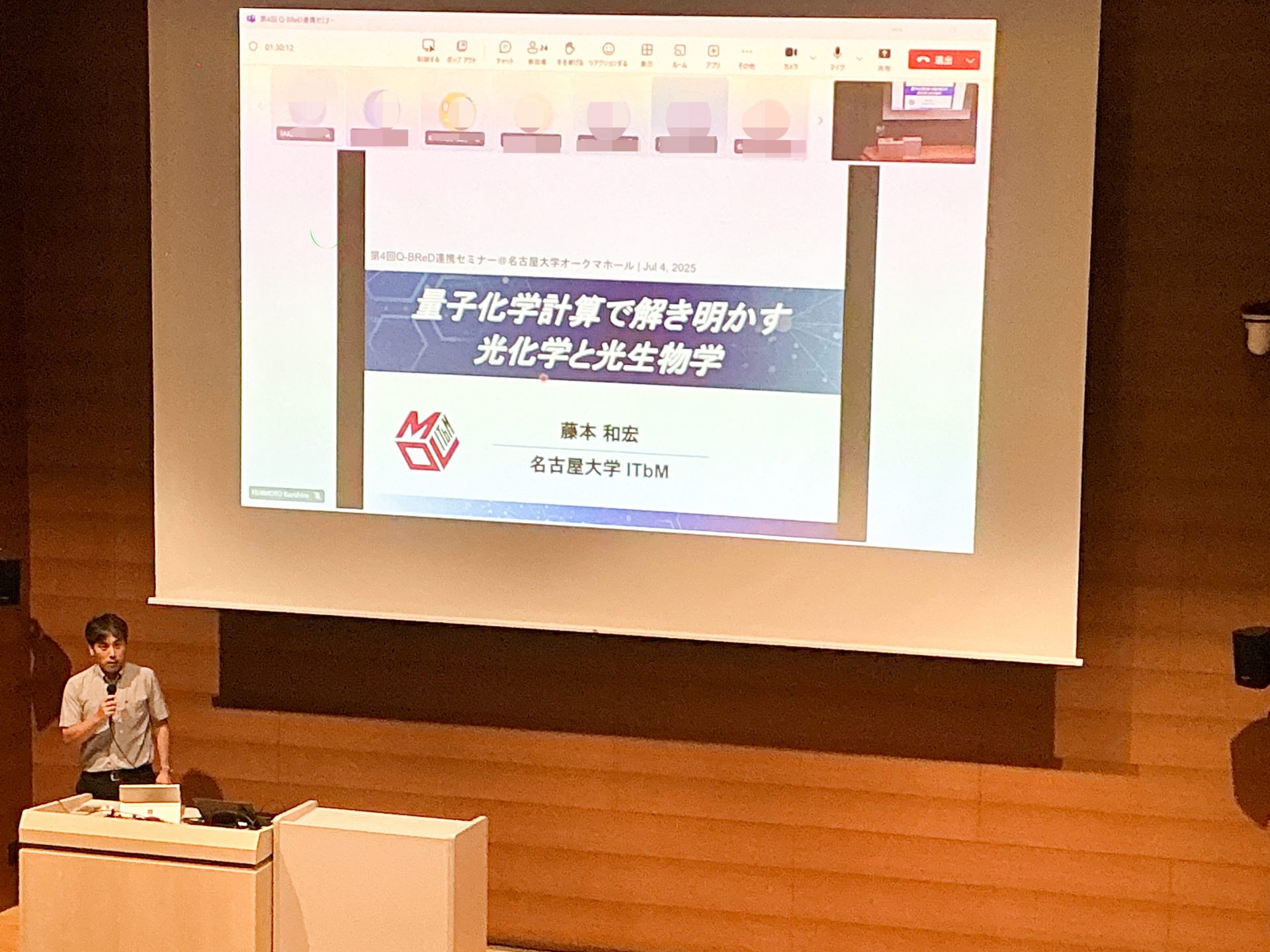 これまで開催したセミナー 「顕微技術の新展開」、「偏極中性子」「量子ドット」 に続き、第4回は 「量子化学計算」 をテーマにし、7月4日(金)に名古屋大学 オークマホールにて、名古屋大学トランスフォーマティブ生命分子研究所 藤本 和宏 特任准教授、 名古屋大学未来社会創造機構マテリアルイノベーション研究所 長岡 正隆 特任教授を講師として開催しました。