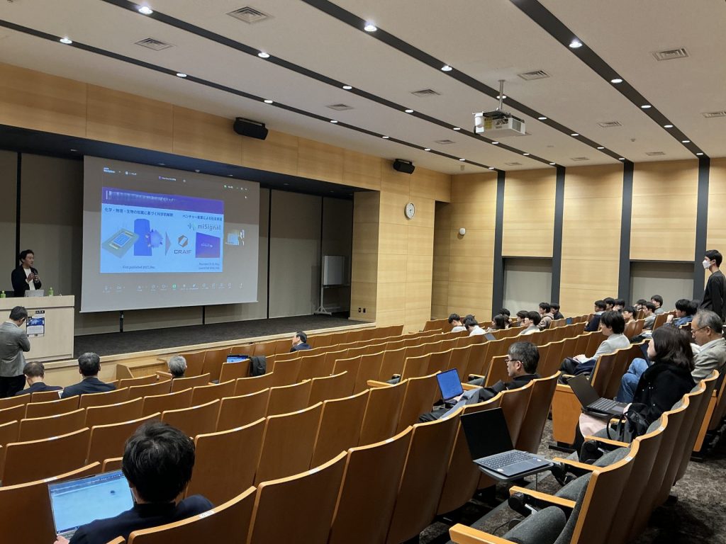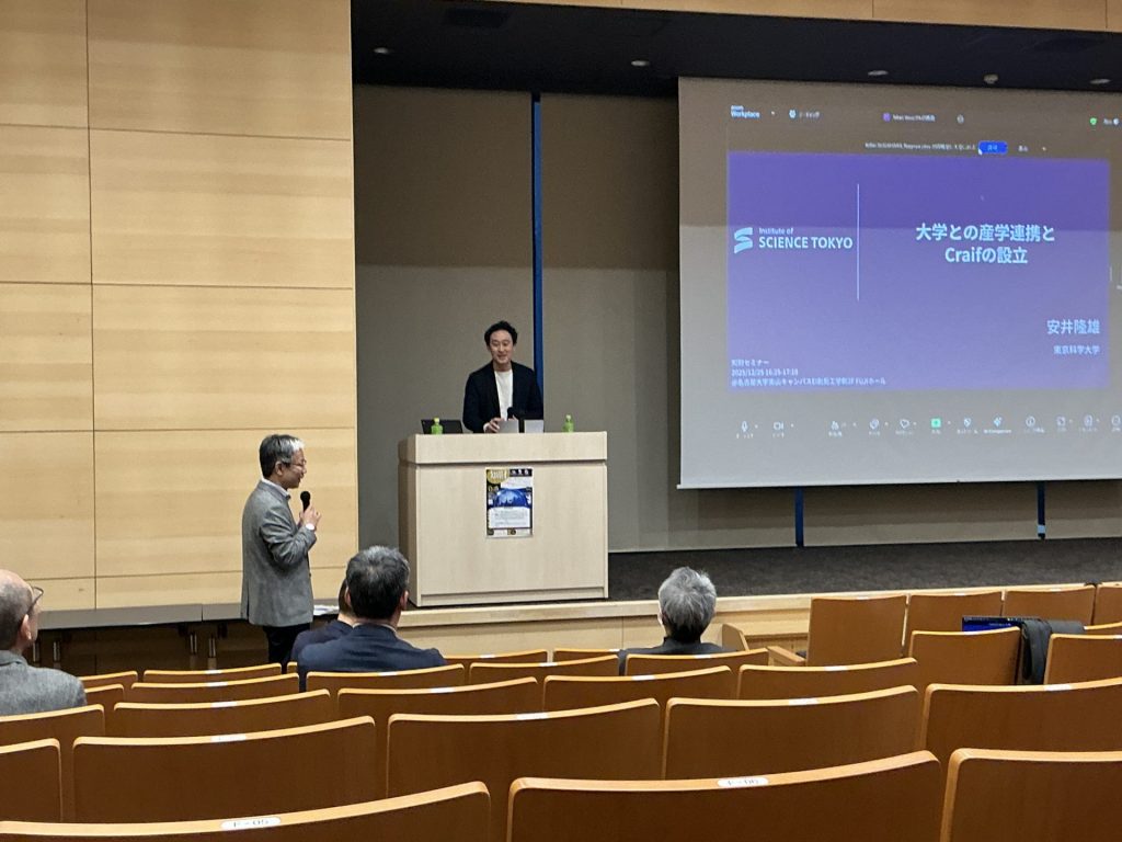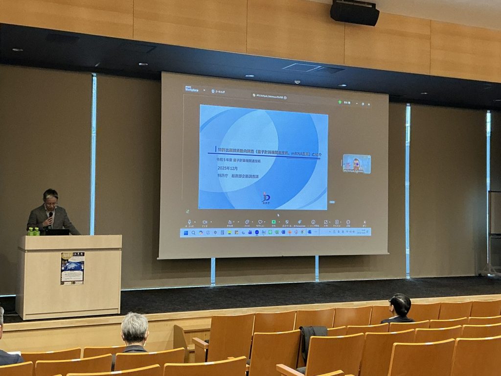 特許庁および工業所有権情報・研修館(INPIT)よりQ-BReDに関連する知的財産に関する情報提供をいただくとともに、Q-BReDメンバーである安井隆雄先生(東京科学大学 教授・名古屋大学 量子化学イノベーション研究所 特任教授(併任))に、基盤研究からベンチャースタートアップ設立に至るまでのプロセスについてご講演いただきました。安井先生は、名大発ベンチャーCraifを共同創業されました。