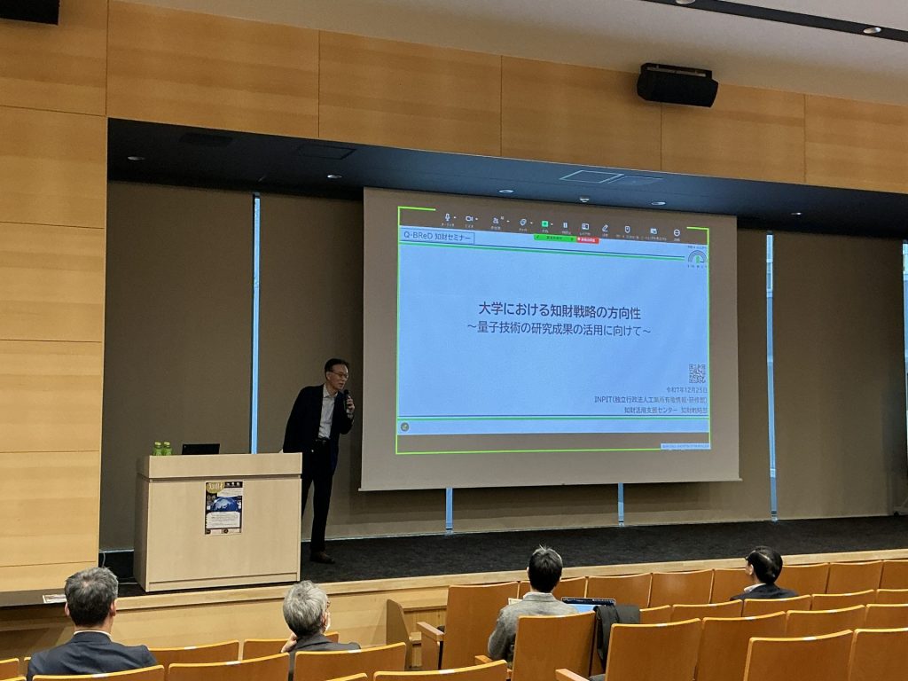 知財セミナーを開催しました(特許庁・INPIT・Q-BReD安井隆雄特任教授の講演)